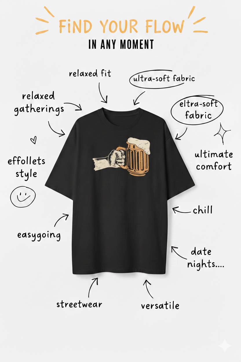 Our T-shirts are made from premium breathable cotton with a soft feel, relaxed oversized fit, and durable screen prints designed for long-lasting everyday wear.